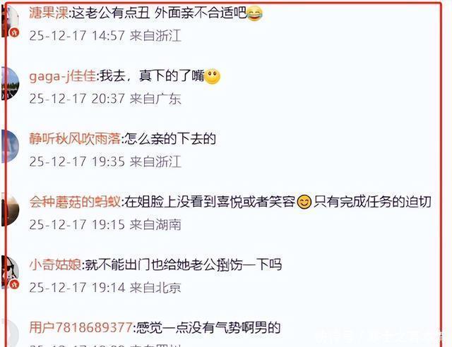 这不是演,这是生活。 有网友说:“他们不在乎镜头,不在乎热搜,就像一对普通夫妻在生活中撒点糖。” 也有人调侃:“张萌都43了,还这么猛亲老公,是不是有点太甜了?”